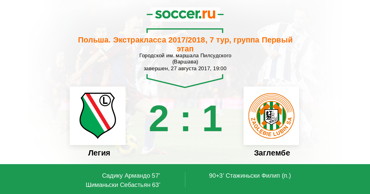 Протокол матча Легия против Заглембе
