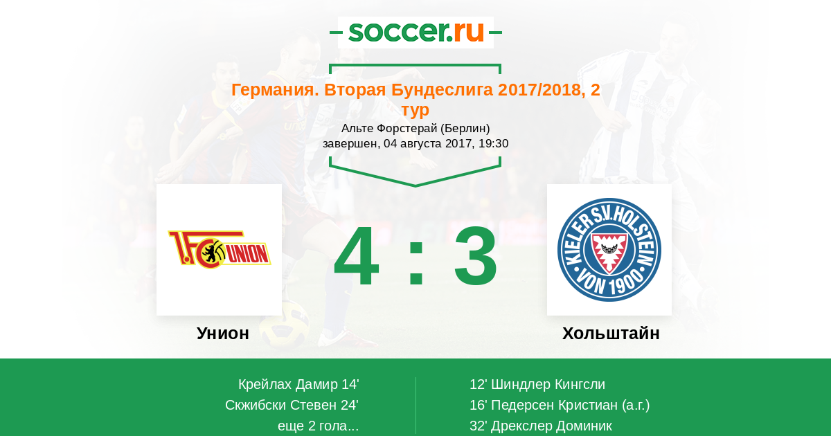 Протокол матча Унион против Хольштайн