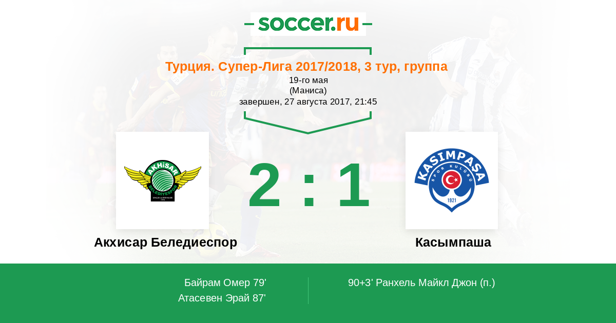 Протокол матча Акхисар Беледиеспор против Касымпаша