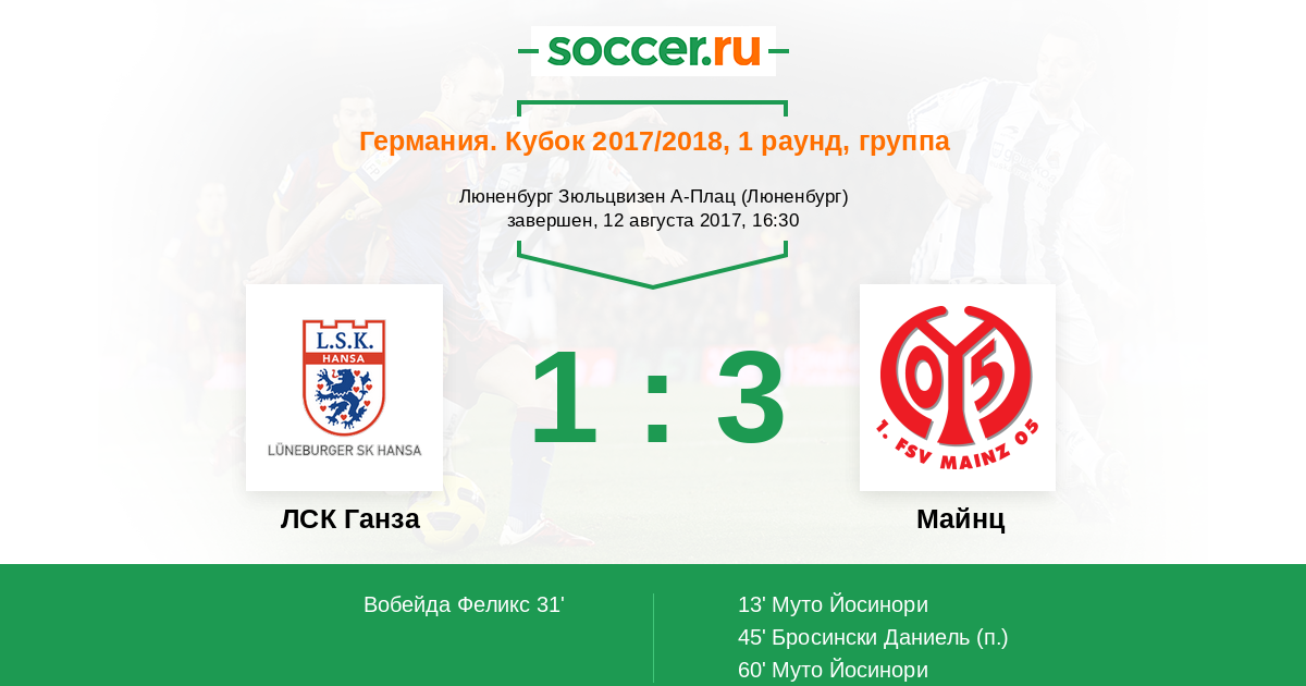 60' (1:3) Муто Йосинори (9) (Бросински Даниель (18))