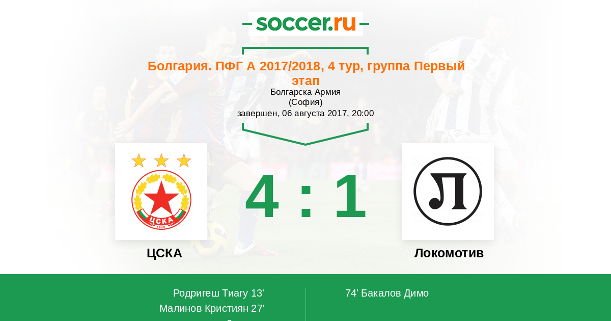 Протокол матча ЦСКА против Локомотив