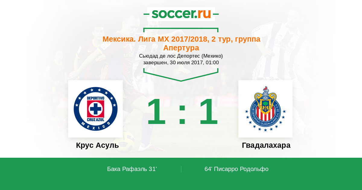 64' (1:1) Писарро Родольфо (20) (Эрнандес Эдвин (6))
