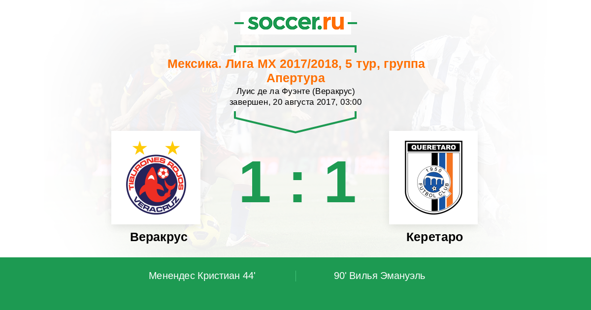 Протокол матча Веракрус против Керетаро