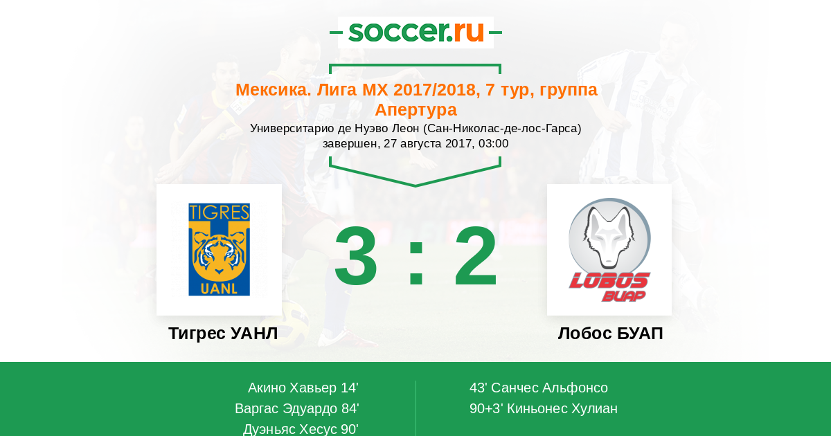 Протокол матча Тигрес УАНЛ против Лобос БУАП