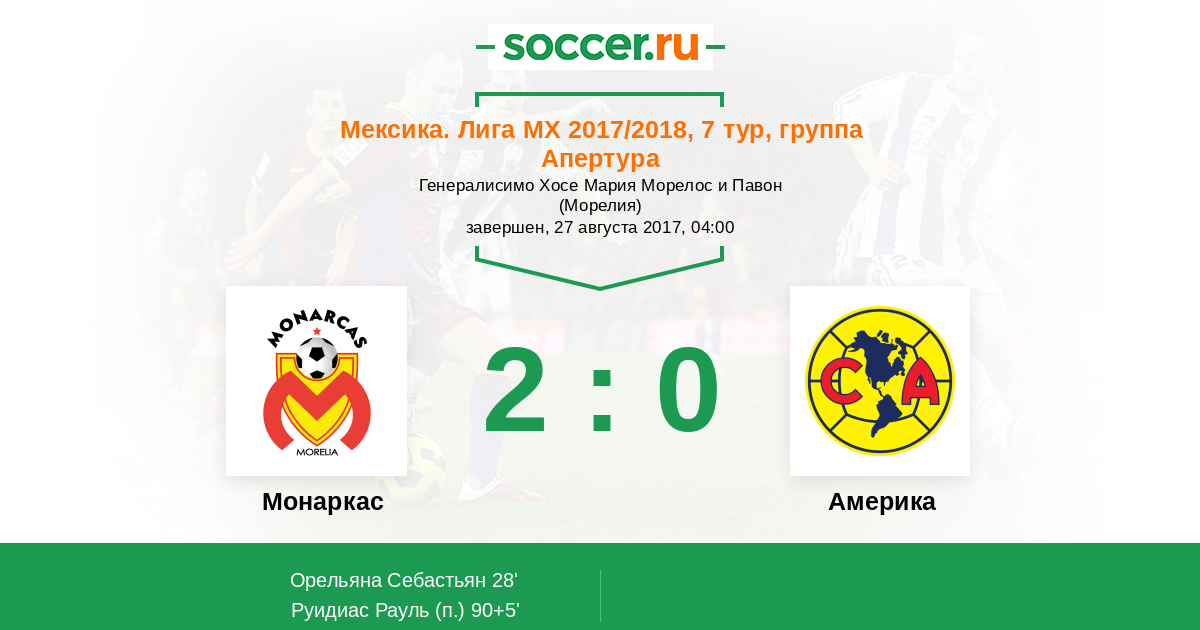 Протокол матча Монаркас против Америка