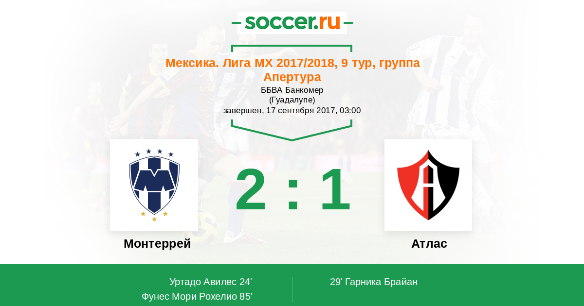 Протокол матча Монтеррей против Атлас