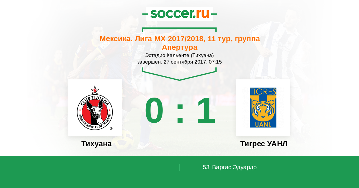 Протокол матча Тихуана против Тигрес УАНЛ