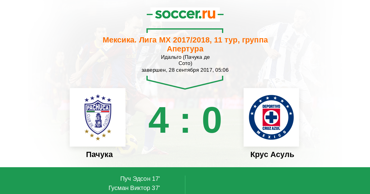 Протокол матча Пачука против Крус Асуль