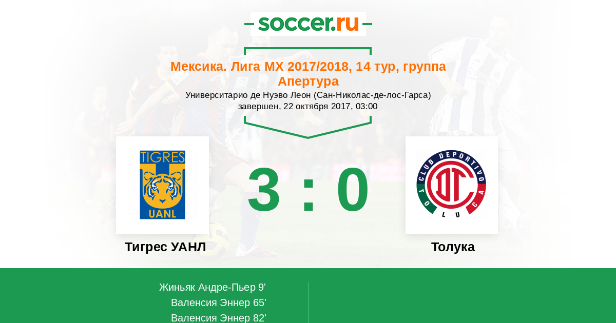 65' (2:0) Валенсия Эннер (13) (Дуэньяс Хесус (29))