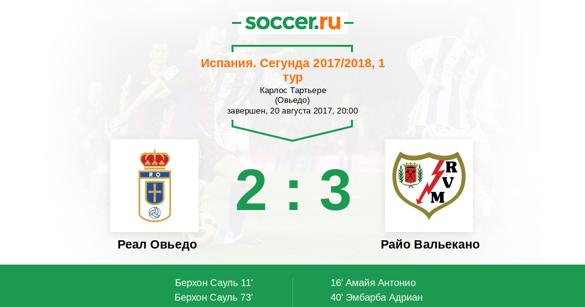 Протокол матча Реал Овьедо против Райо Вальекано