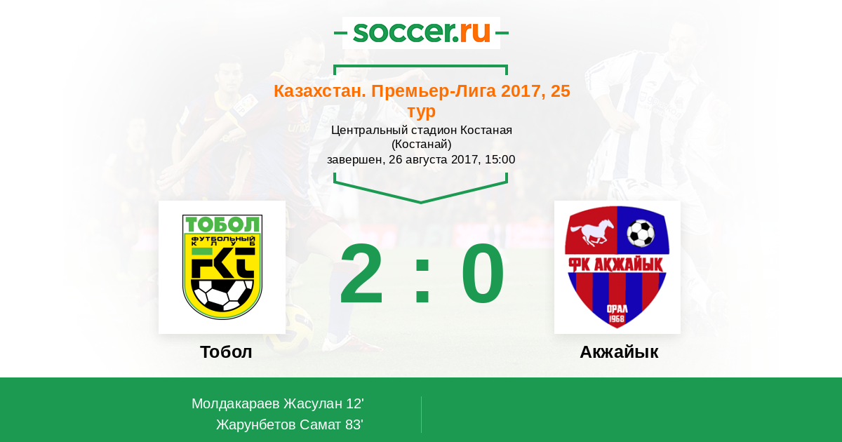 Протокол матча Тобол против Акжайык