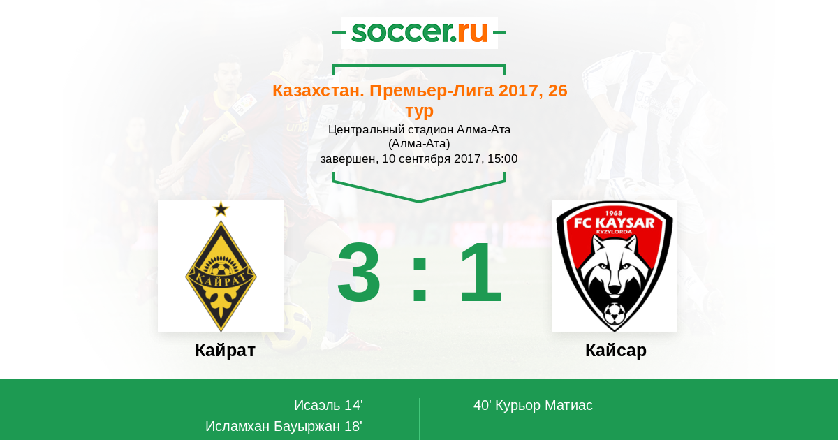 Протокол матча Кайрат против Кайсар