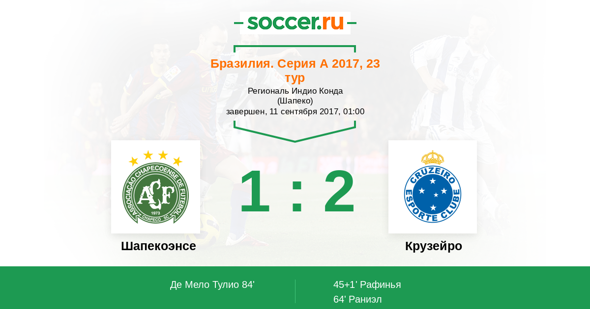 Протокол матча Шапекоэнсе против Крузейро