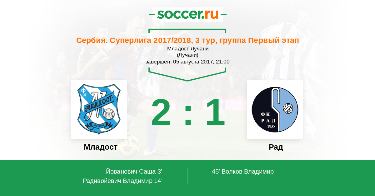 Протокол матча Младост против Рад