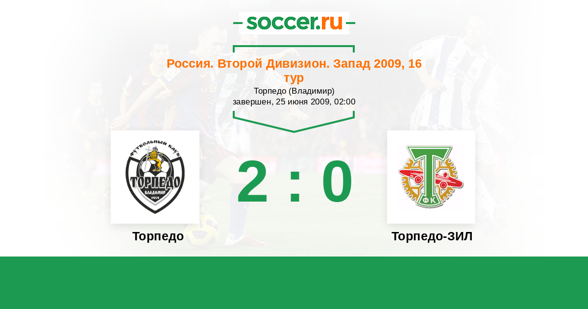 Россия. Вторая лига. Группа 2 12.10.2009 Торпедо-ЗИЛ Логотип футбольный клуб Торпедо-ЗИЛ (Москва) 0:1 Логотип футбольный клуб Торпедо (Владимир) Торпедо