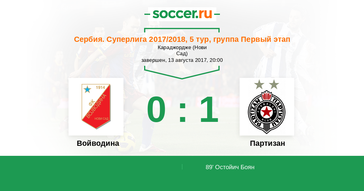 Протокол матча Войводина против Партизан
