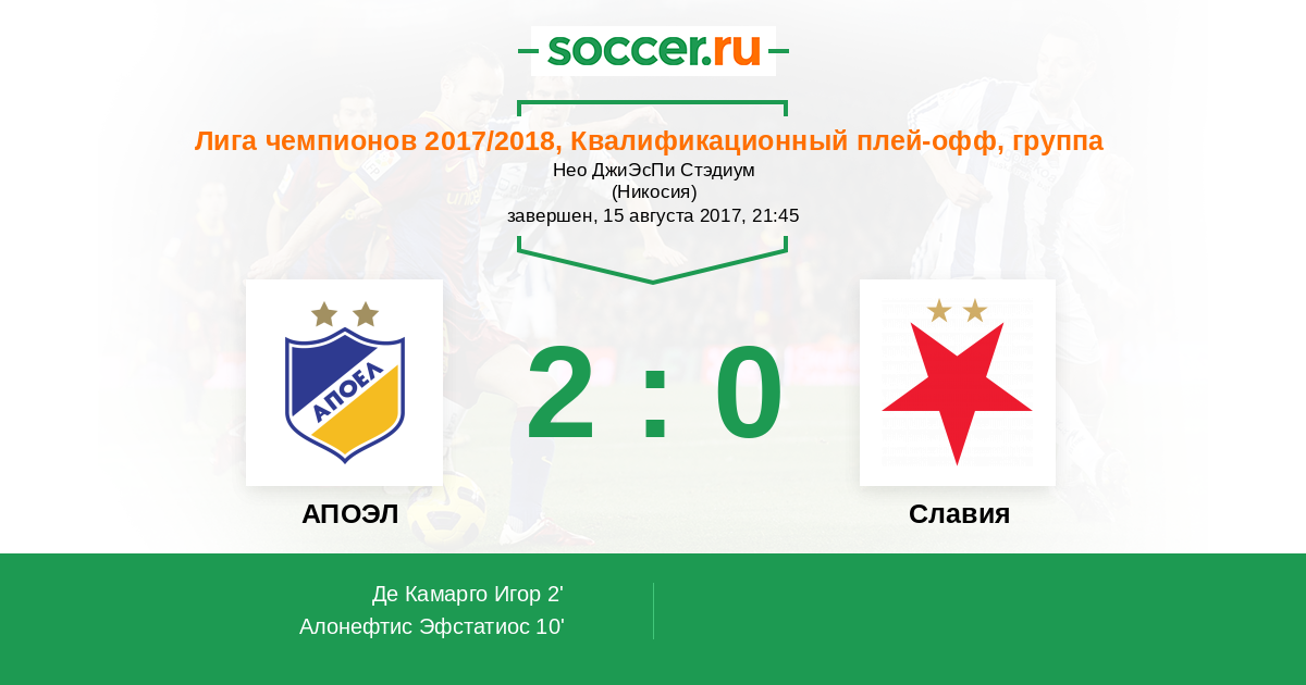 Протокол матча АПОЭЛ против Славия
