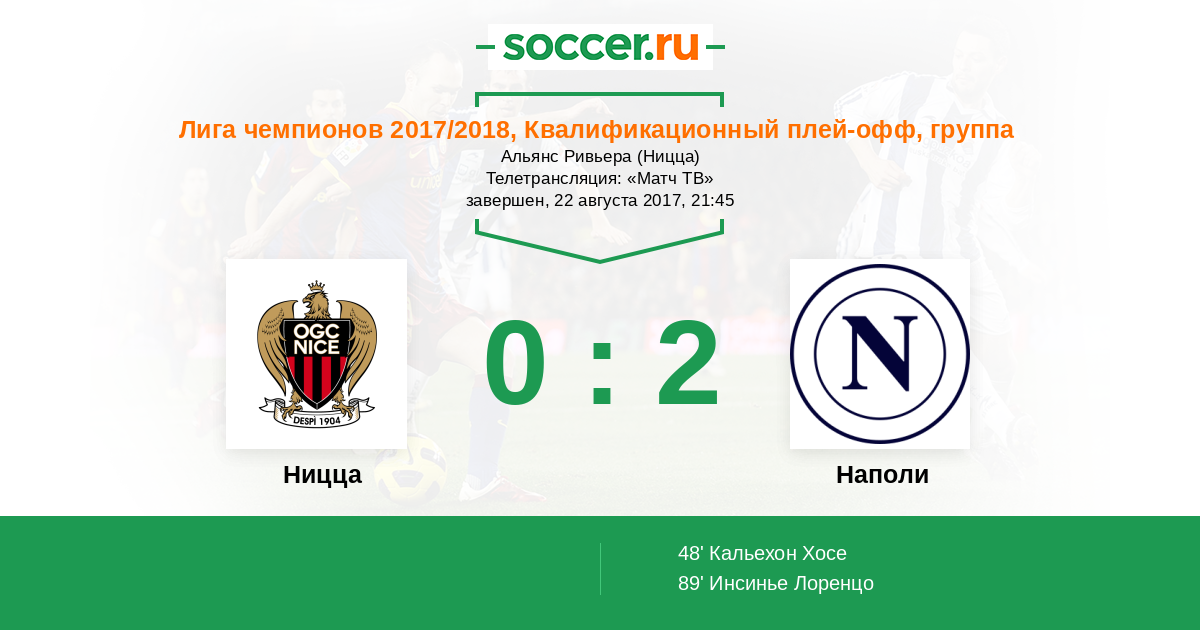 Протокол матча Ницца против Наполи