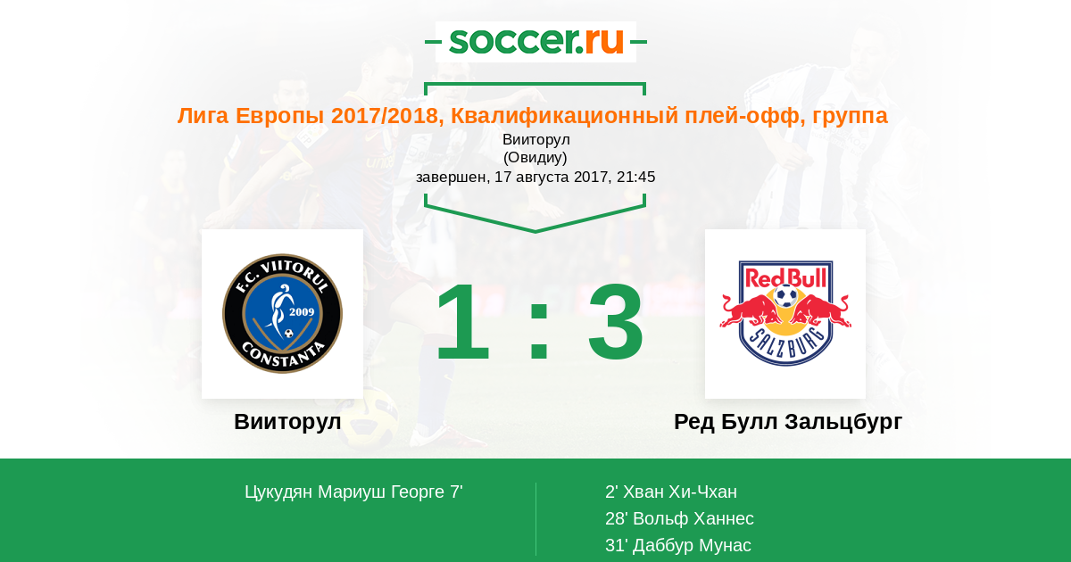 Протокол матча Вииторул против Ред Булл Зальцбург