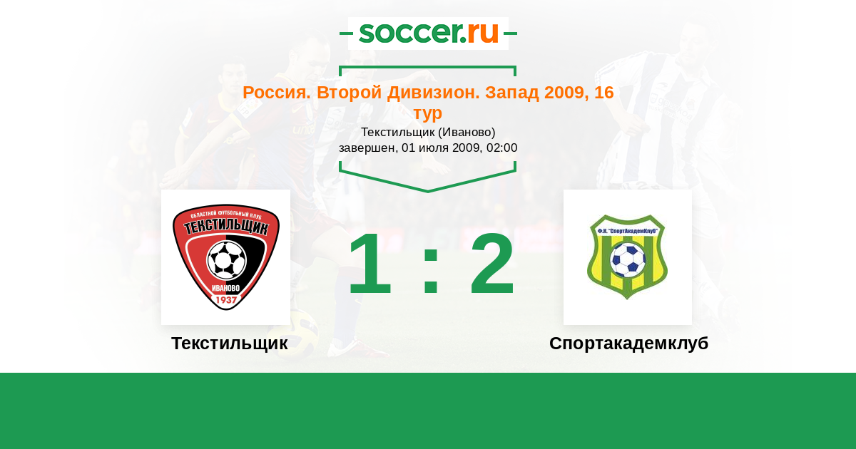 Россия. Вторая лига. Группа 2 12.10.2009 Спортакадемклуб Логотип футбольный клуб Спортакадемклуб (Москва) 2:3 Логотип футбольный клуб Текстильщик (Иваново) Текстильщик