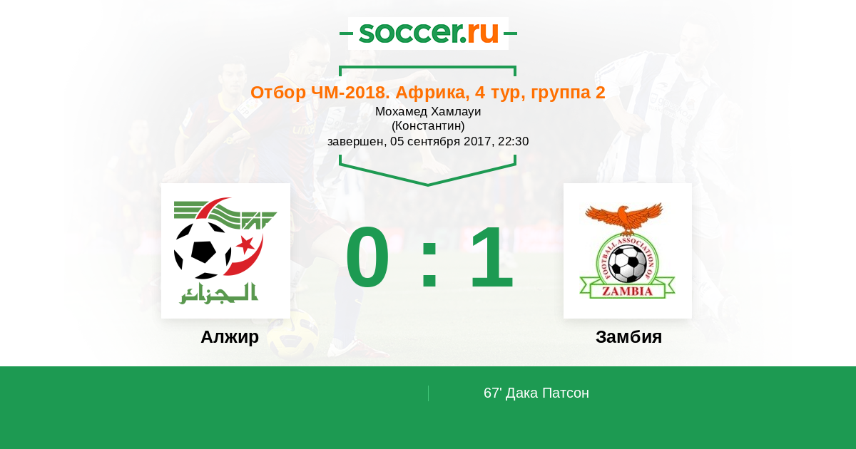 Протокол матча Алжир против Замбия