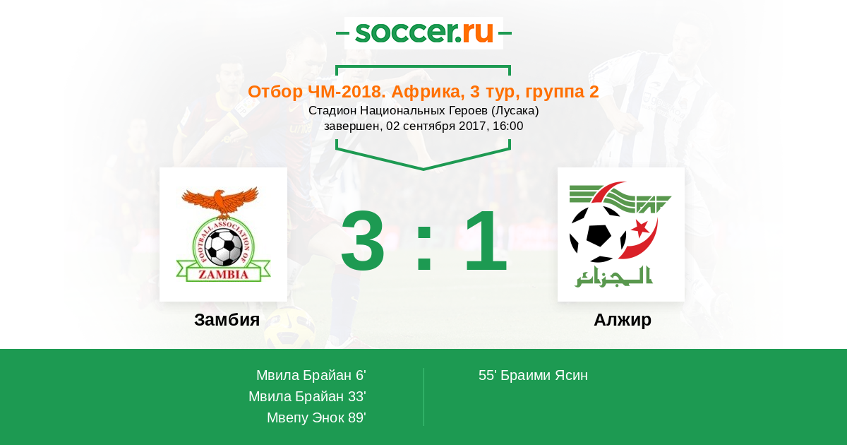 6' (1:0) Мвила Брайан (22) (Муленга Аугустин (17))