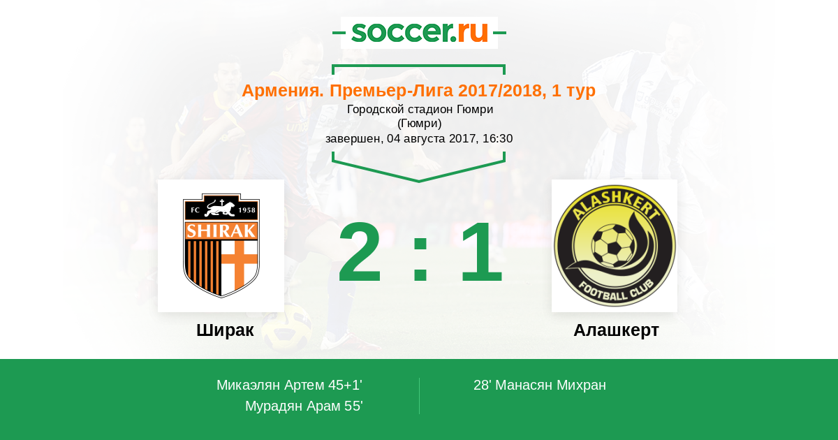 Протокол матча Ширак против Алашкерт