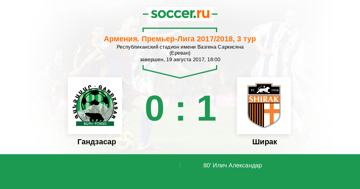 Протокол матча Гандзасар против Ширак