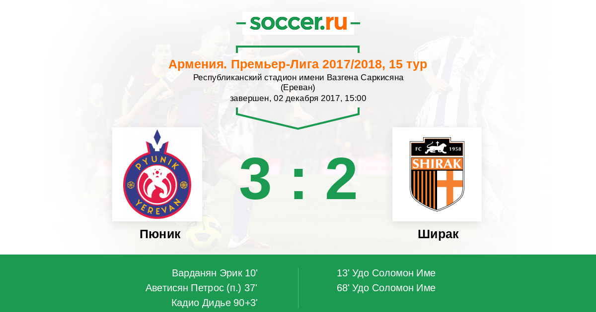 Протокол матча Пюник против Ширак