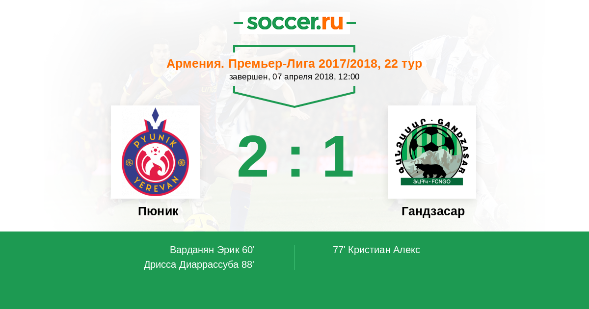 Протокол матча Пюник против Гандзасар