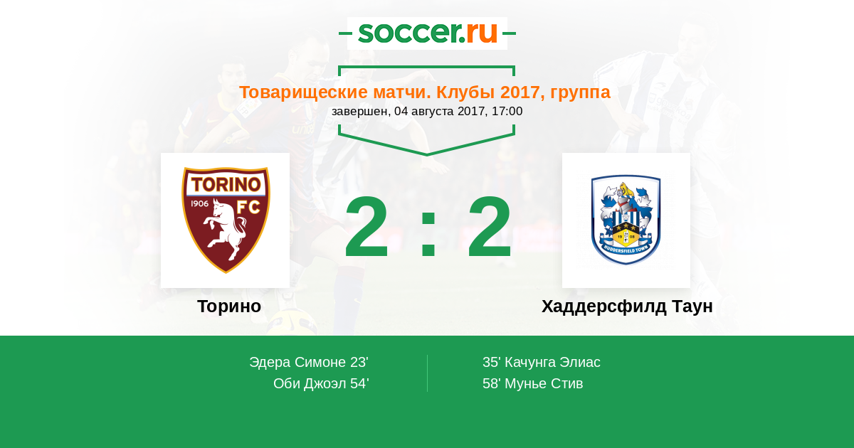 Протокол матча Торино против Хаддерсфилд Таун