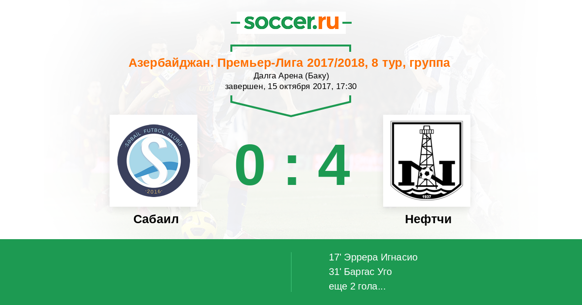 Протокол матча Сабаил против Нефтчи