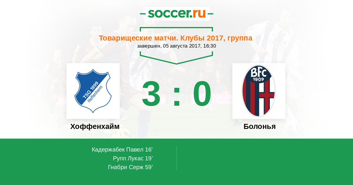Протокол матча Хоффенхайм против Болонья