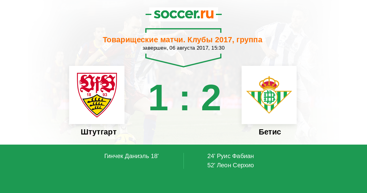 Протокол матча Штутгарт против Бетис