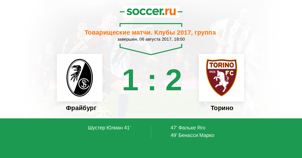 Протокол матча Фрайбург против Торино