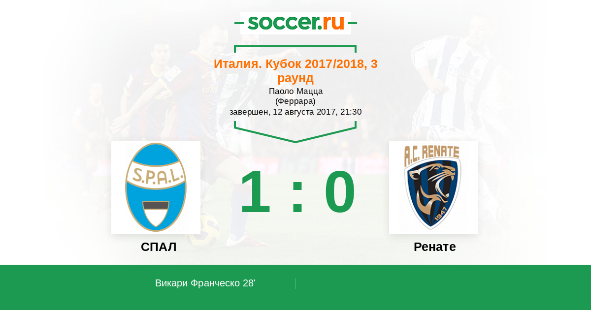 Протокол матча СПАЛ против Ренате