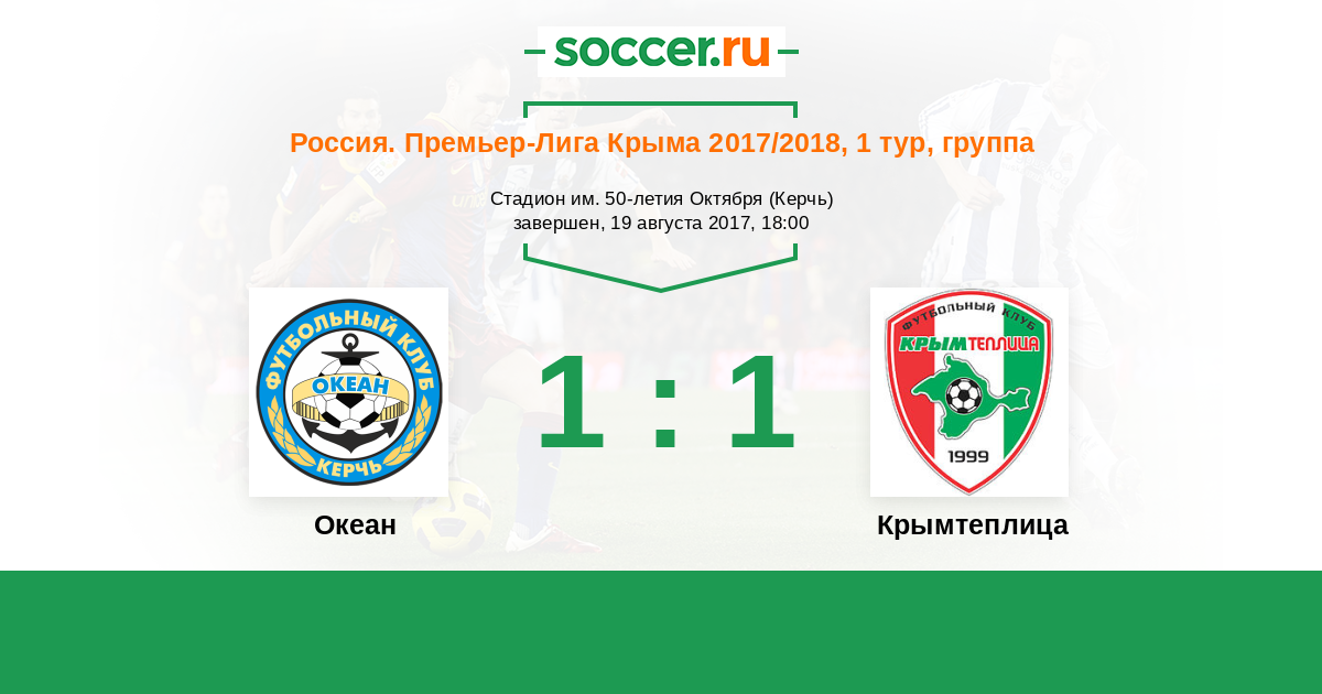 Россия. Премьер-Лига Крыма 14.10.2017 Крымтеплица Логотип футбольный клуб Крымтеплица (Молодежное) 1:0 Логотип футбольный клуб Океан (Керчь) Океан