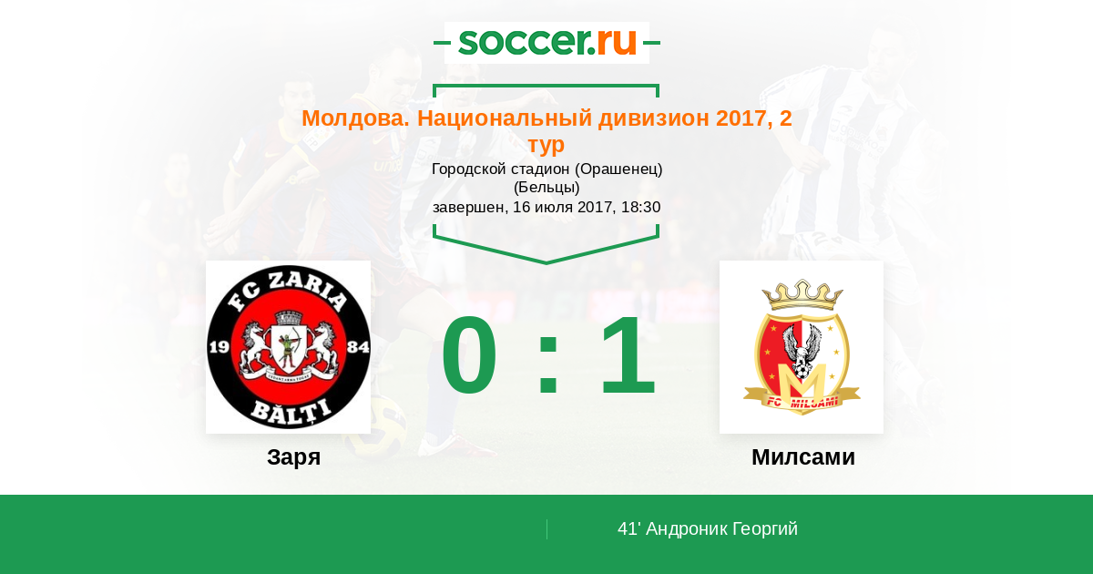 Протокол матча Заря против Милсами