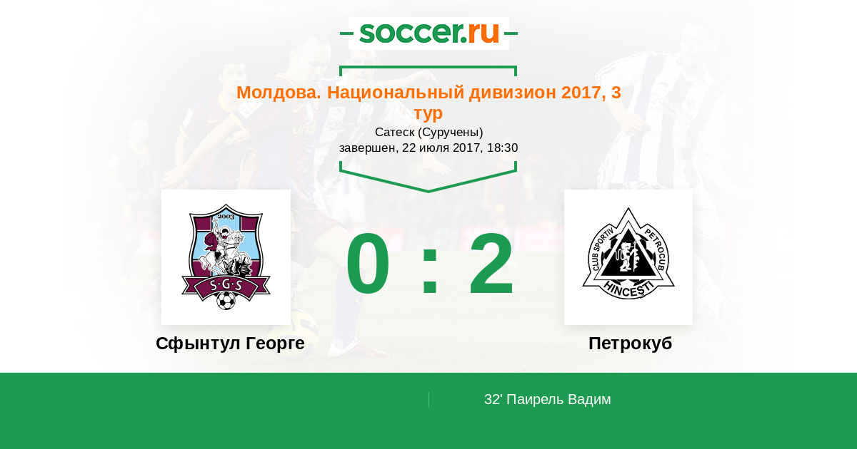 Протокол матча Сфынтул Георге против Петрокуб