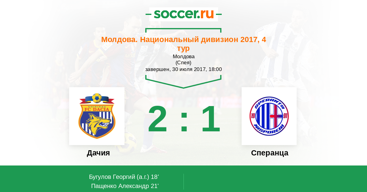 Протокол матча Дачия против Сперанца