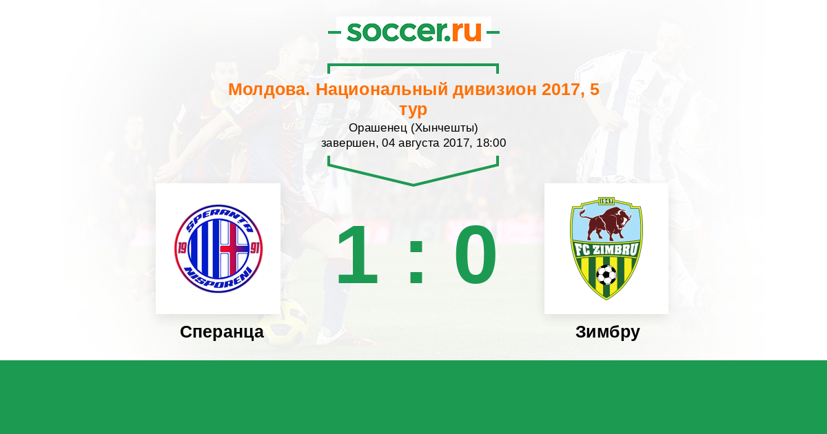 Молдова. Национальный дивизион 25.08.2018 Зимбру Логотип футбольный клуб Зимбру (Кишинев) 1:0 Логотип футбольный клуб Сперанца (Крихана Веке) Сперанца