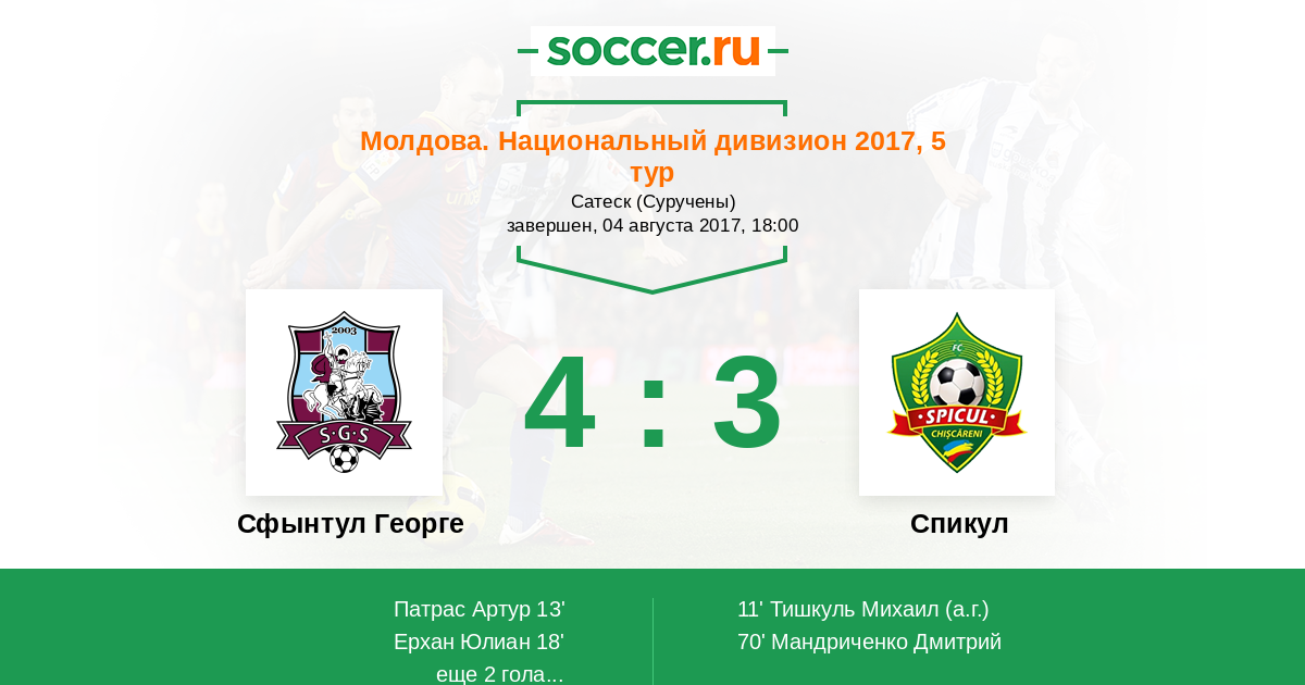 Протокол матча Сфынтул Георге против Спикул