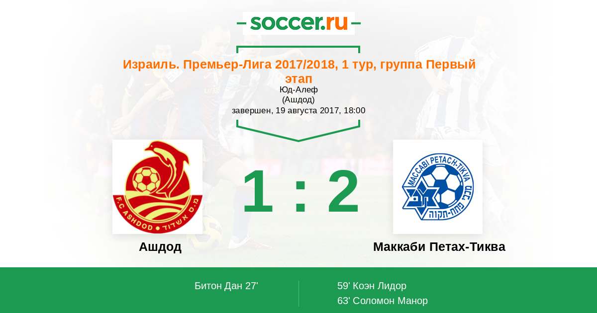 Протокол матча Ашдод против Маккаби Петах-Тиква