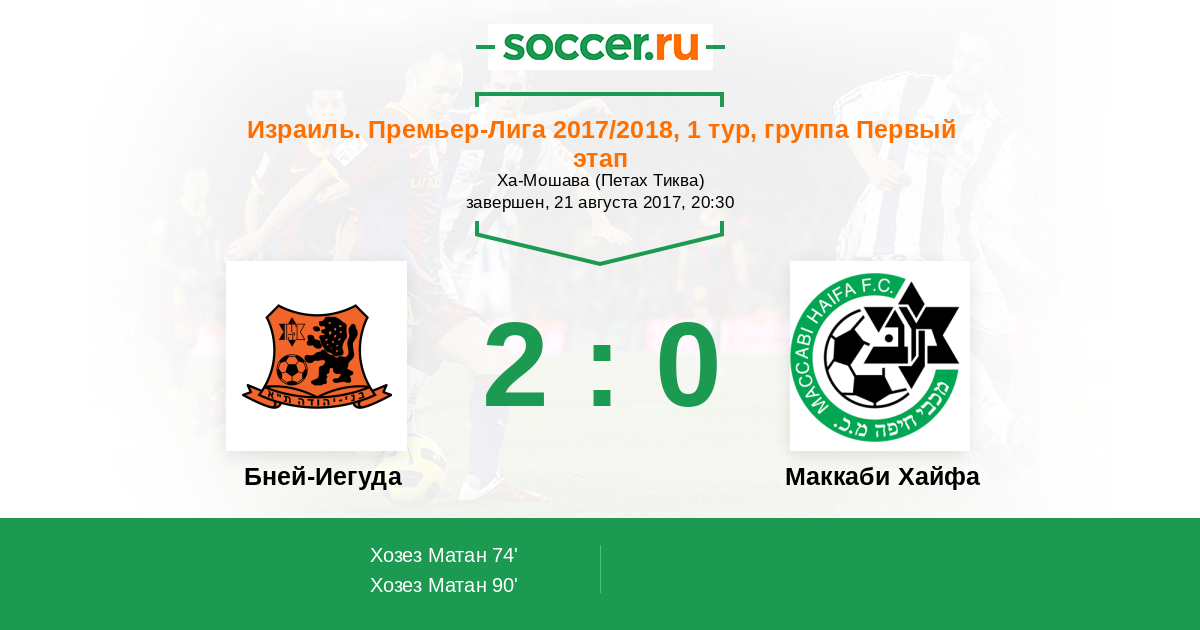 Протокол матча Бней-Иегуда против Маккаби Хайфа