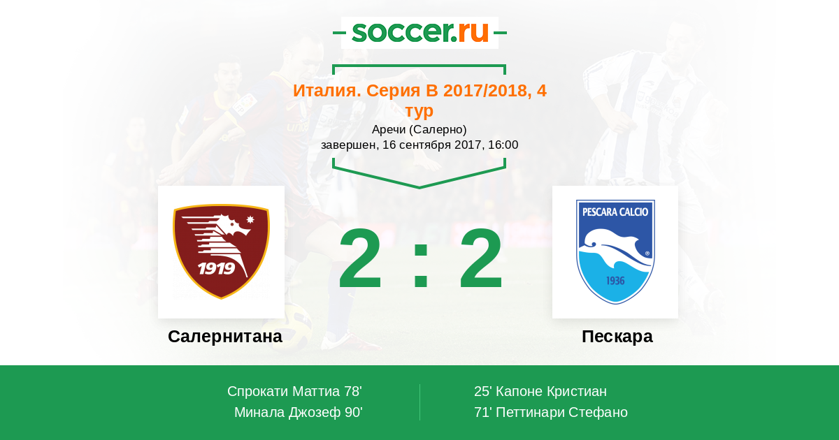 Протокол матча Салернитана против Пескара