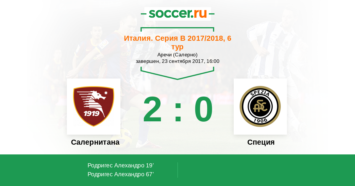Протокол матча Салернитана против Специя