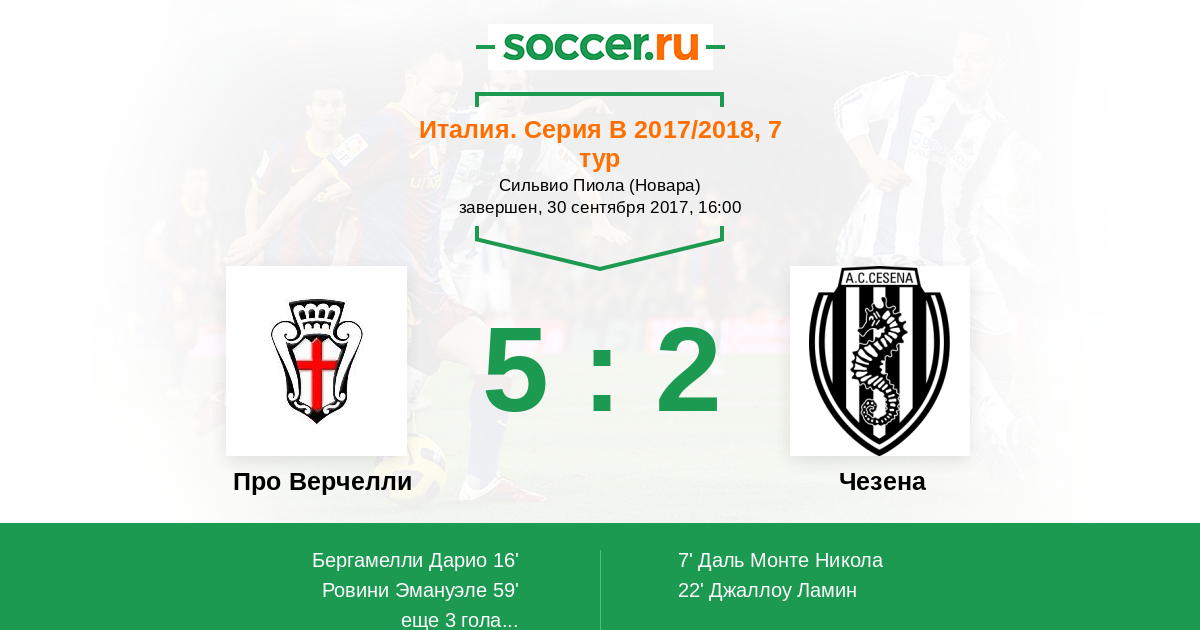 Протокол матча Про Верчелли против Чезена