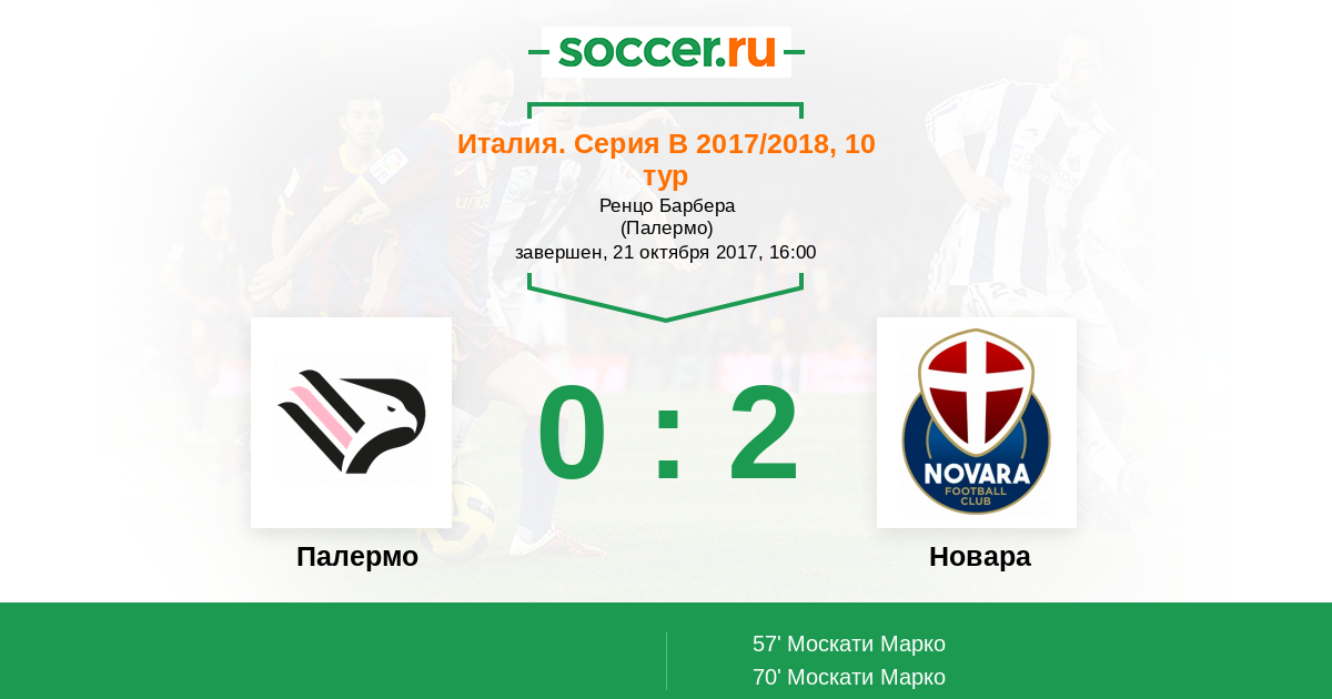 Протокол матча Палермо против Новара