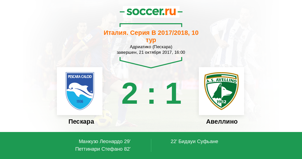 Протокол матча Пескара против Авеллино