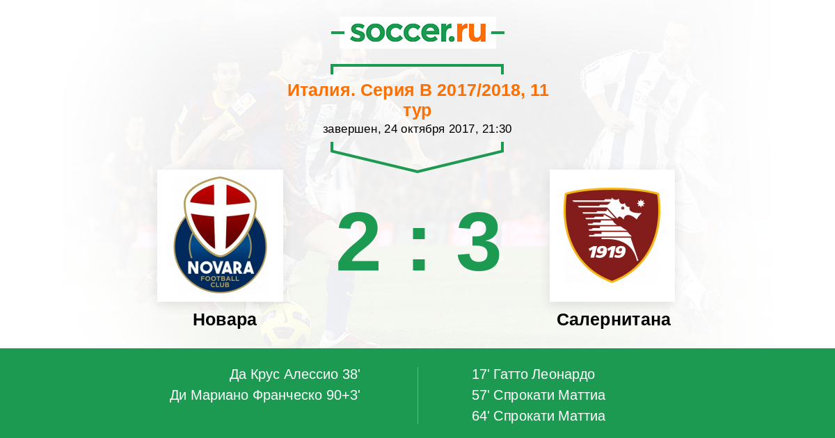 Протокол матча Новара против Салернитана